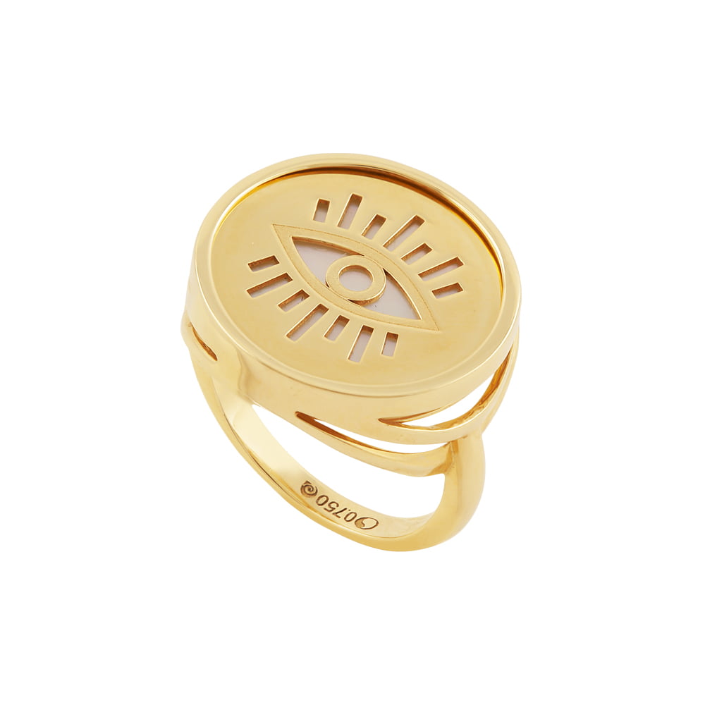 Anel Dedinho de Olho Grego com Madrepérola ao Fundo