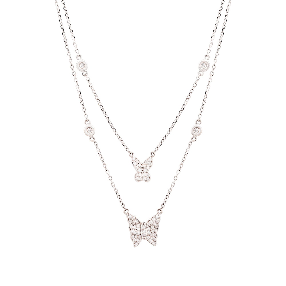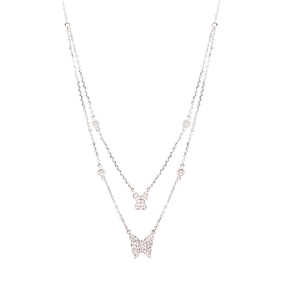 Colar com Duas Borboletas com Brilhantes em Ouro Branco.