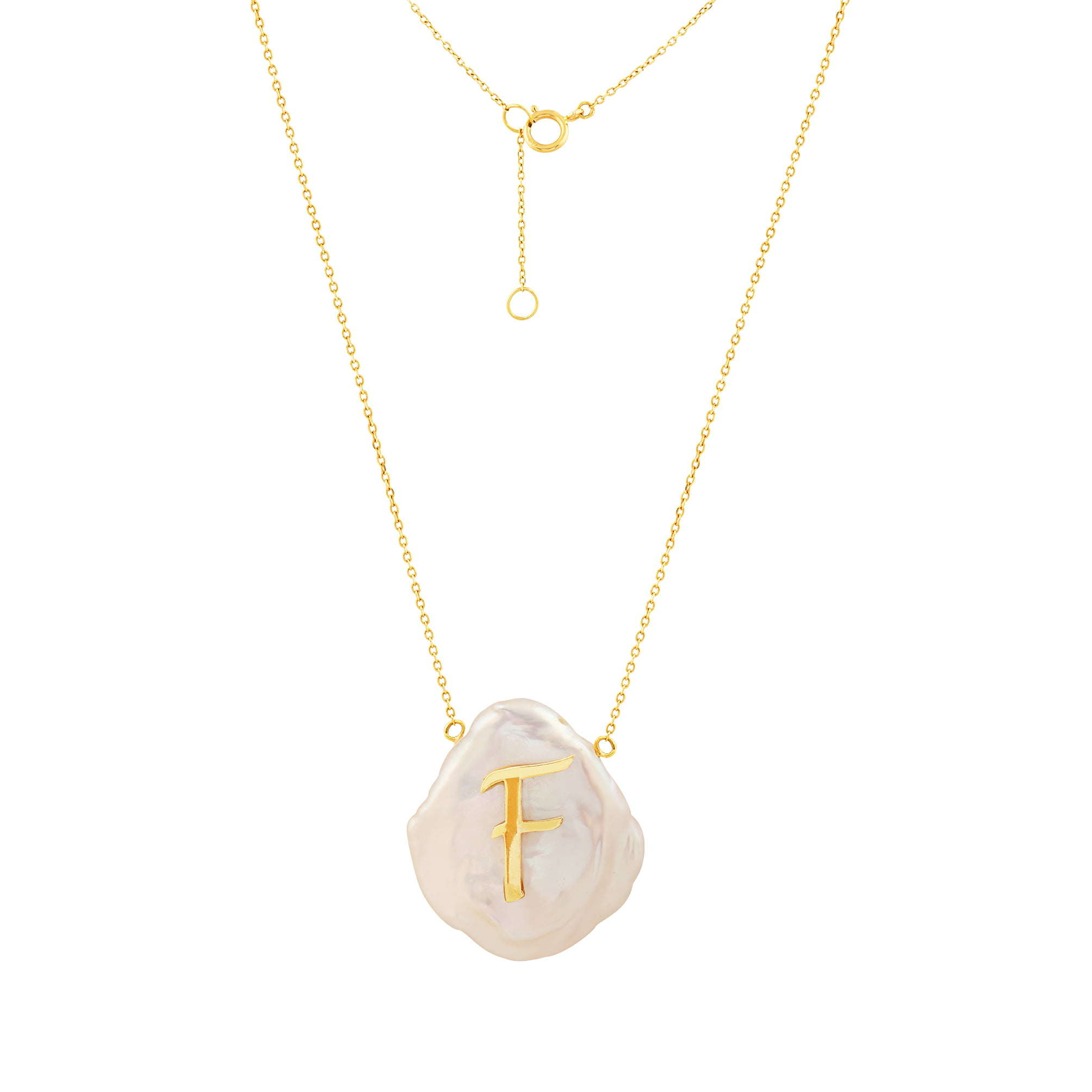 Colar de Perola Barroca com Inicial em Ouro Amarelo