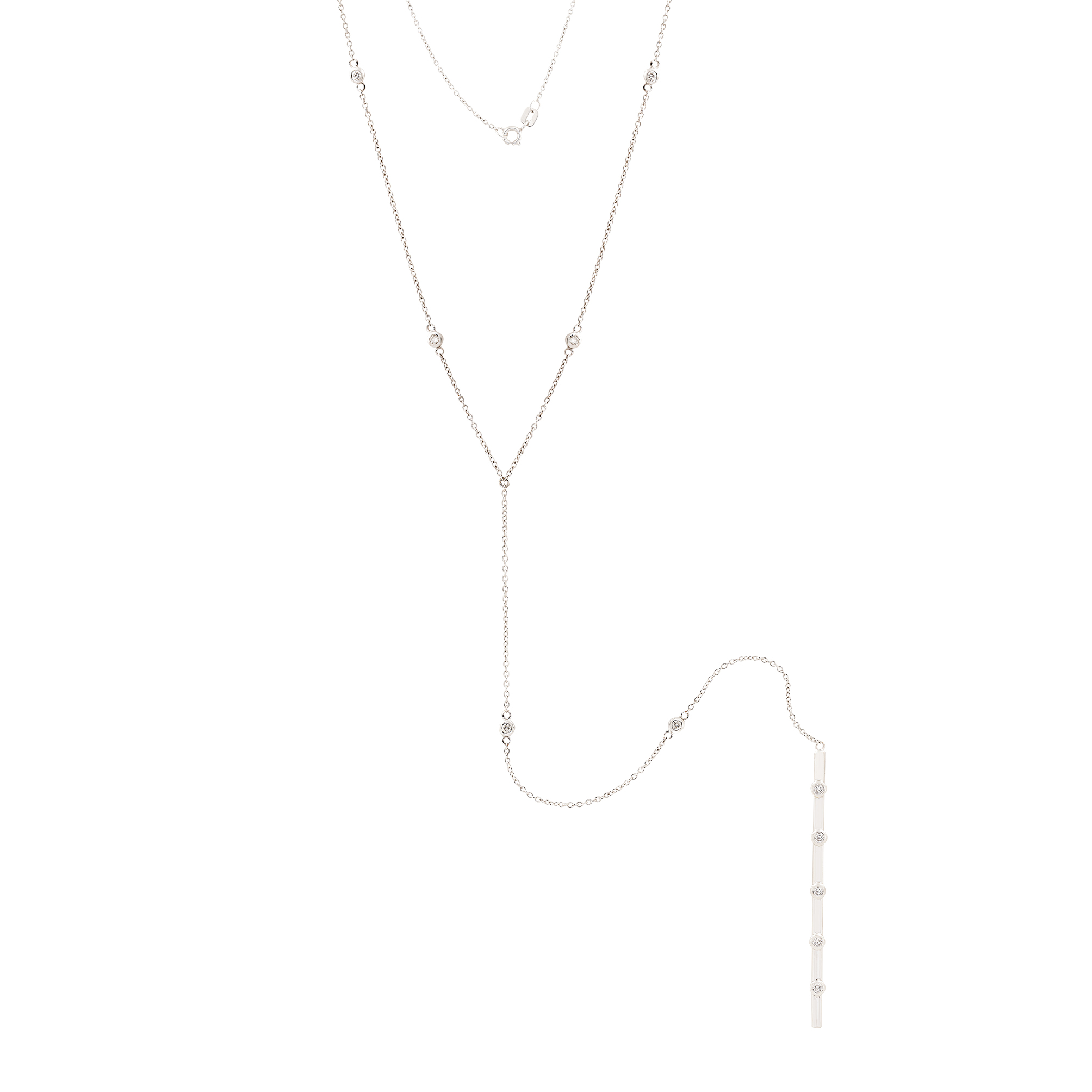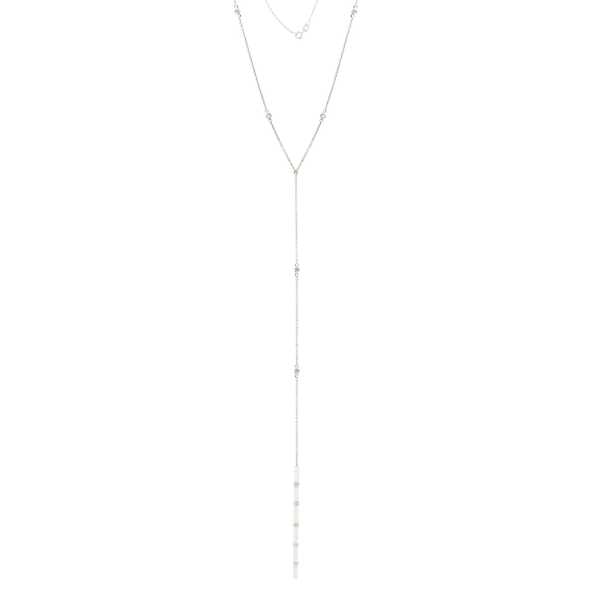 Colar Gravata em Ouro Branco com Pêndulo de 05 Brilhantes