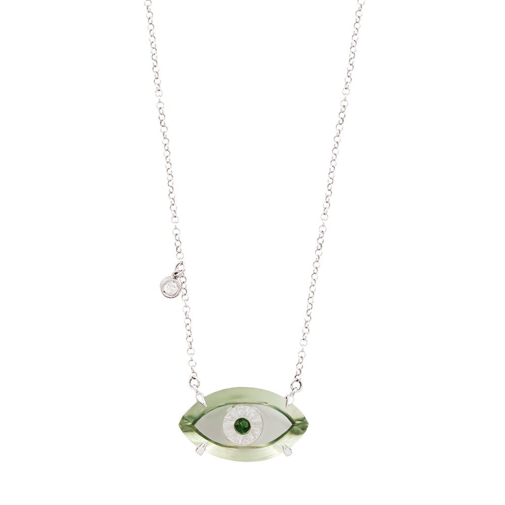 Colar de Olho Grego Prasiolita e Topázio Branco com Brilhante em Ouro Branco